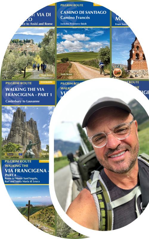 In 2008, when Sandy first walked the Camino de Santiago, he found a lifelong calling. Long-distance walking became a way to unite adventure, reflection, and community. Writing came naturally next: his guidebooks for Cicerone Press — including the beloved Via di Francesco — opened the pilgrim world to thousands.