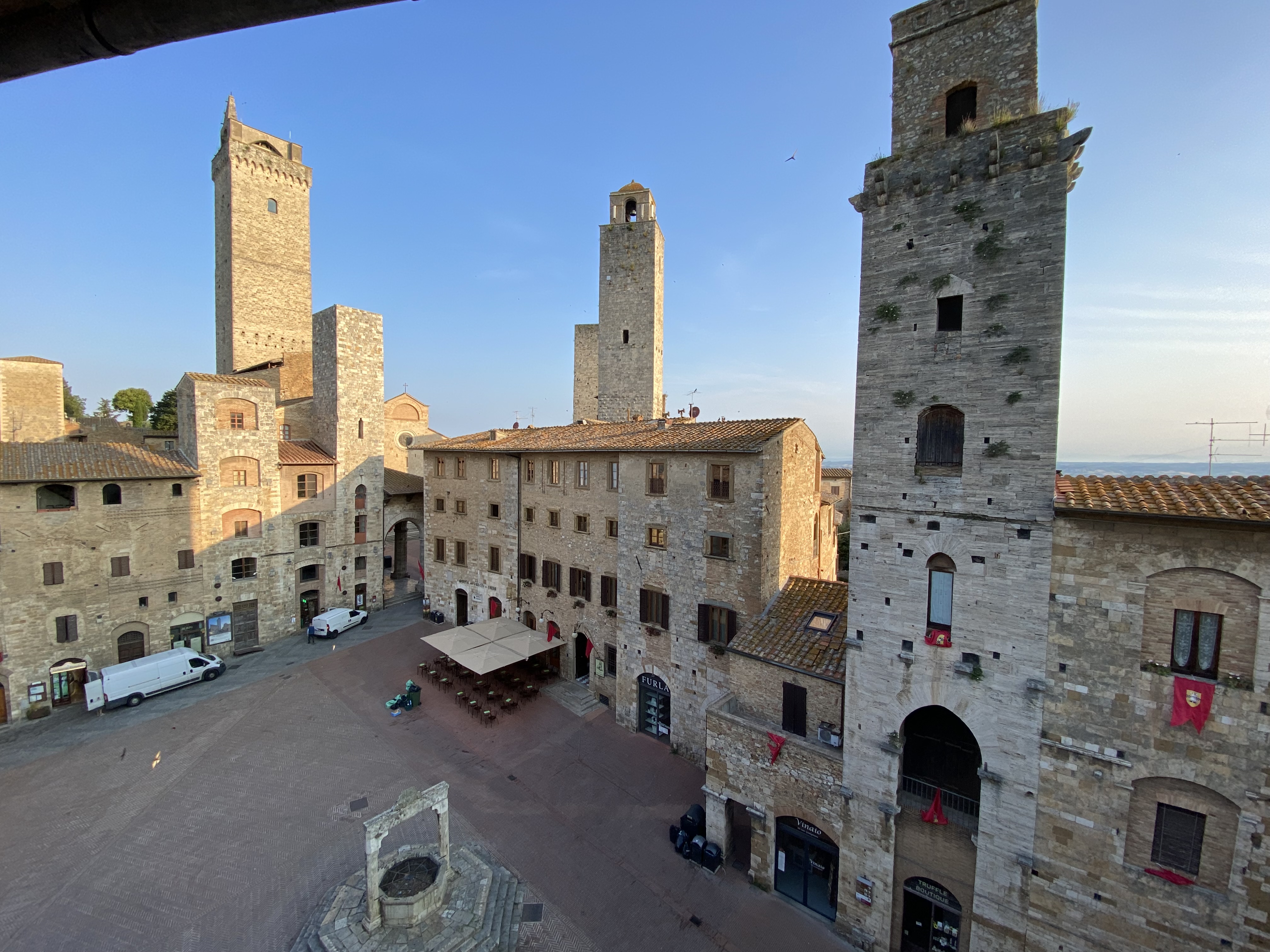 A shorter day through rolling farmland and chestnut woods. Arrive in San Gimignano, the “city of towers,” with time for gelato, museums, and medieval piazzas.