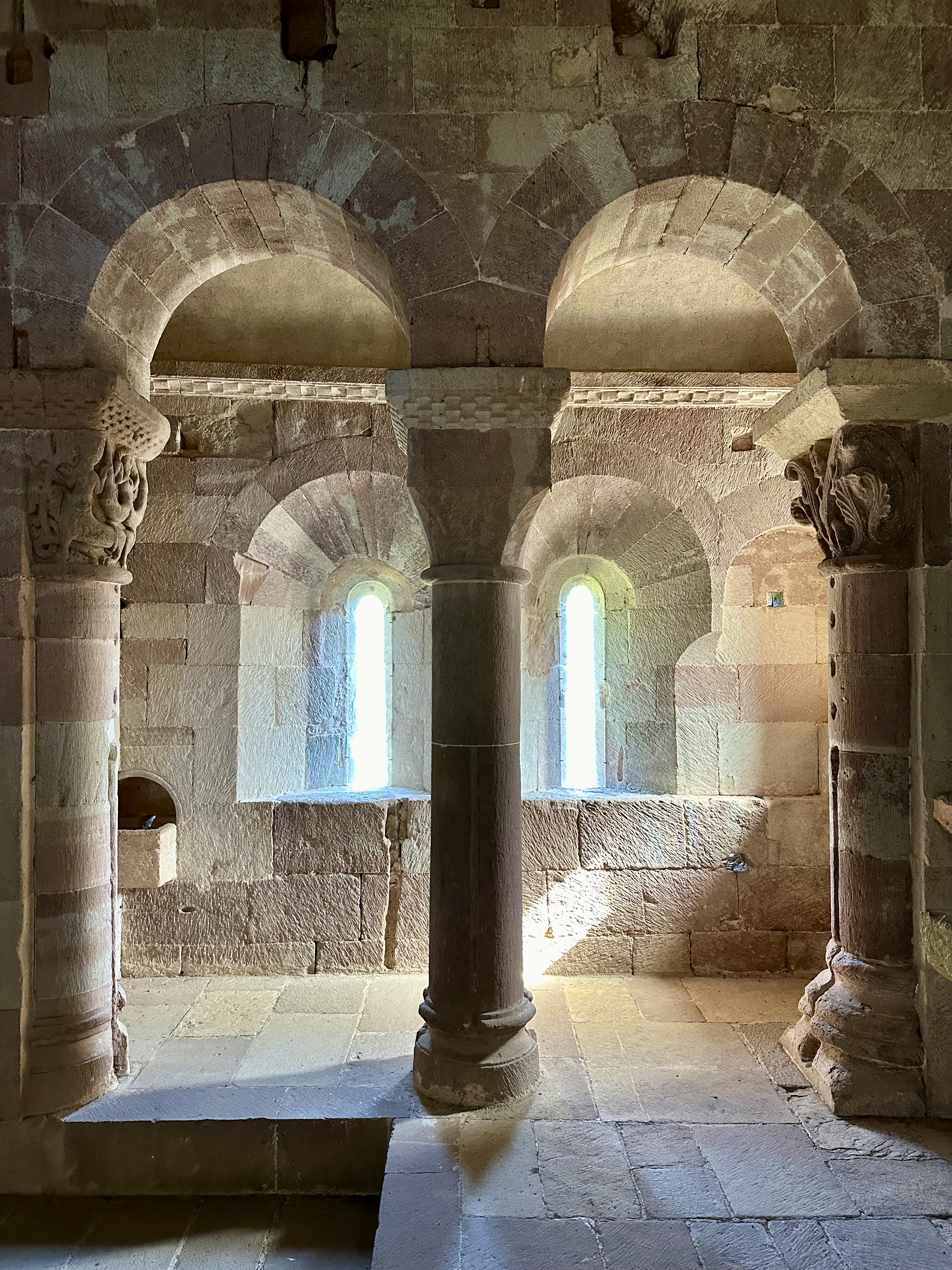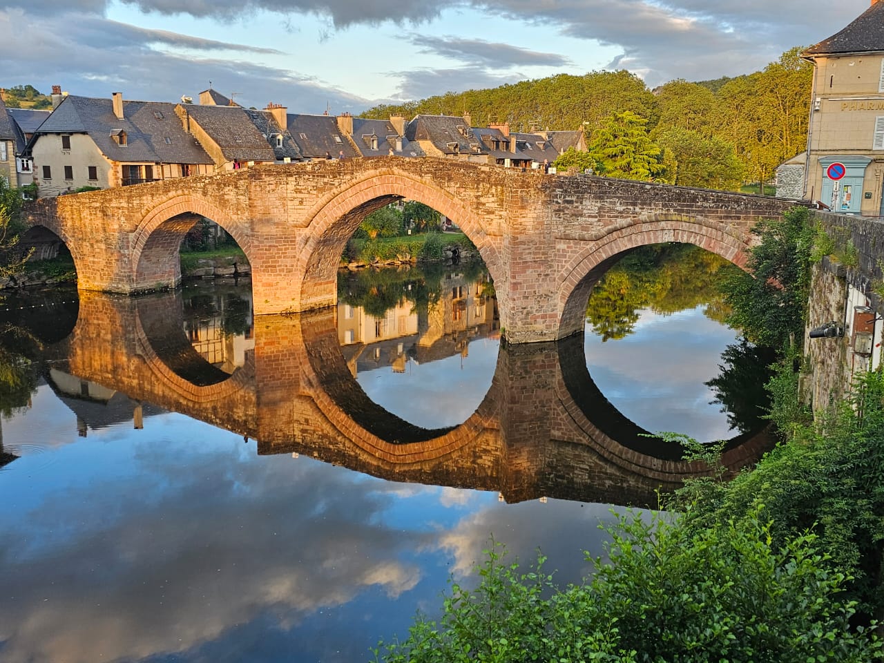 We leave Espalion following the river path after few km we merge on an asphalt road and get to the beautiful church of St Pierre de Bessuejouls where we can admire its architecture and the elaborated capitals. Right after the church we pass the quaint village of Armagnac where we may decide to stop for a coffee (here it is fine also to bring your picnic) . After the village we start the only climb all under the trees’ canopy through the red-grey rocks We reach the top and exit the woodlands doing a gradual descent to the Lot river valley, we pass the Castle of Beauregard, at 9.7 we may opt for a stop at the Chemin de l’Oustalou bar then soon after the small and picturesque hamlet of Verrieres with its pilgrims bridge. Once past the last village we opted for a path that stays as close as possible to the main river (not yet seen) and then merge on the road to enter Estaing. At the end of the walk we have a transfer to the hotel in Conques.
