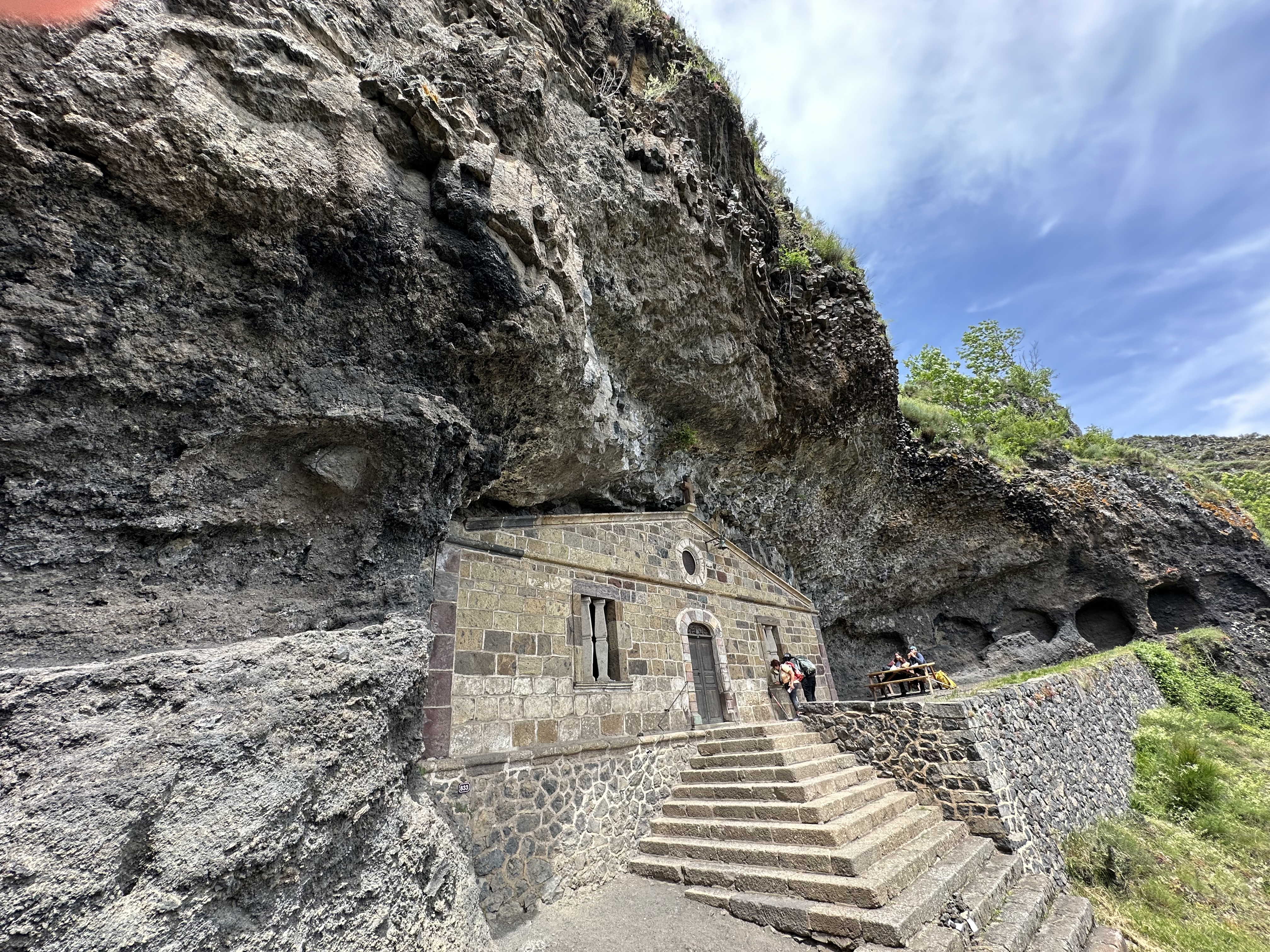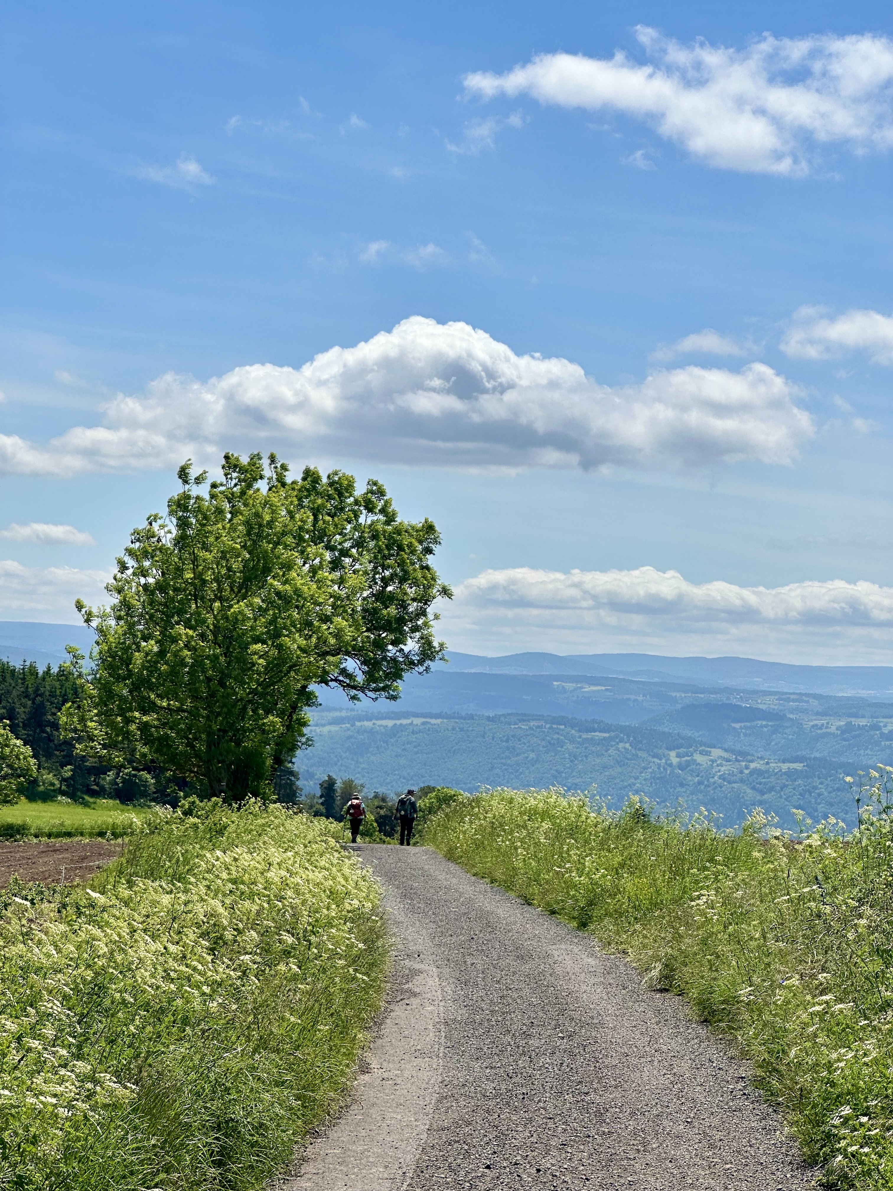 Our pilgrimage begins in Le Puy-en-Velay, where for centuries pilgrims have gathered beneath the volcanic peaks crowned by the Chapel of Saint-Michel d’Aiguilhe and the cathedral of Notre-Dame du Puy. From here the trail descends into the valley, quickly leading us into the green hills, deep ravines, and timeless villages of the Velay and Gévaudan regions.