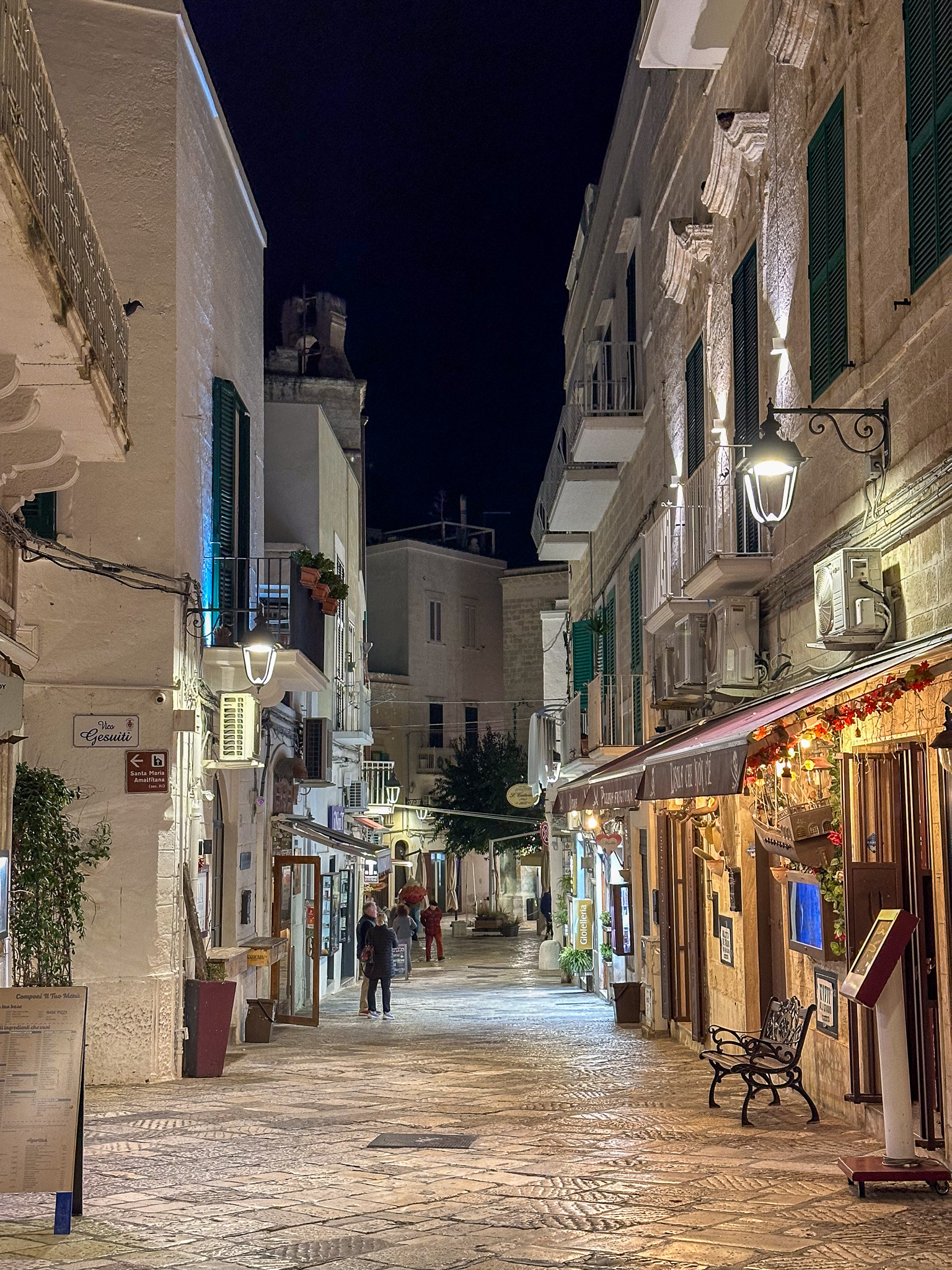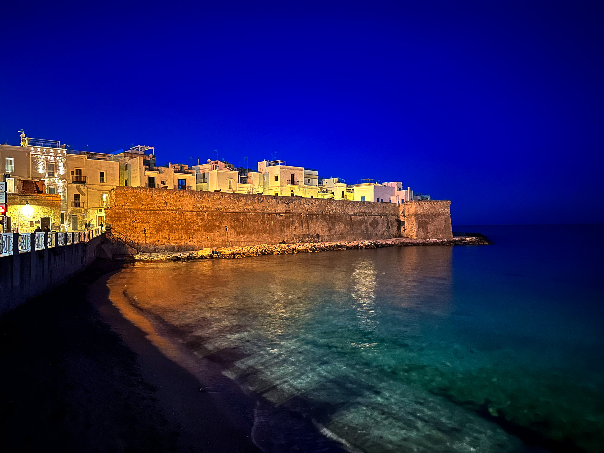 Today’s path hugs the Adriatic, leading to Polignano a Mare, perched dramatically on limestone cliffs. Famous for sea caves and narrow whitewashed streets, this town is a highlight of the region. Evening strolls reveal breathtaking views of the turquoise waters below.