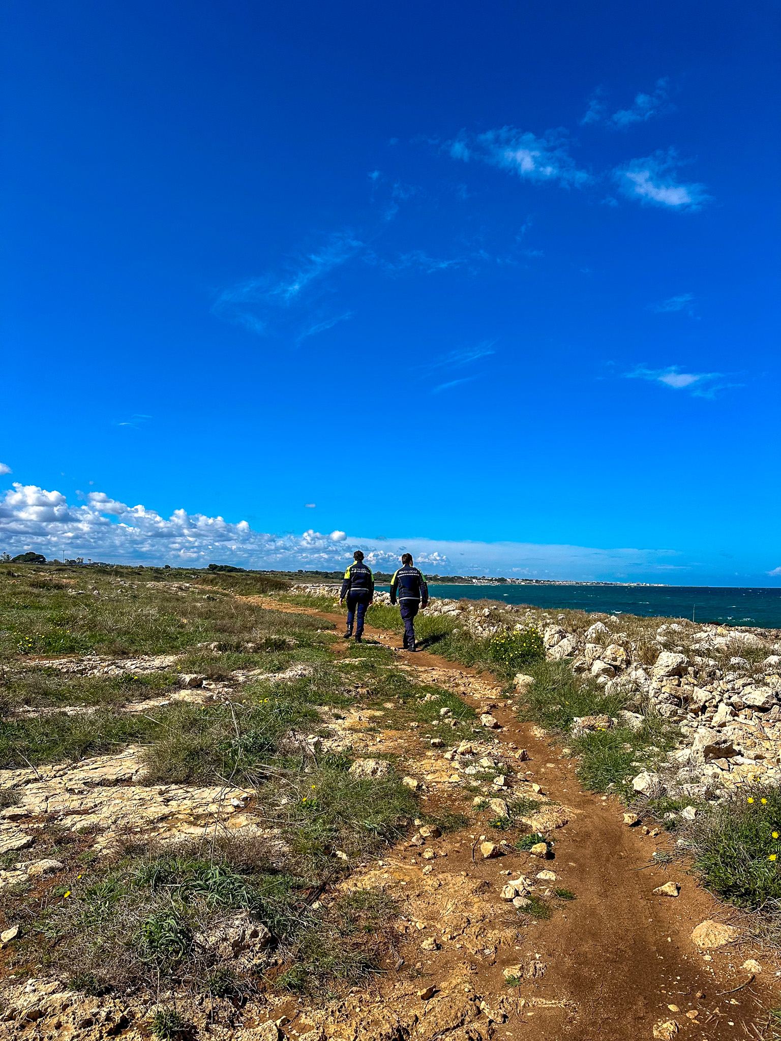 Leaving Brindisi, the route heads inland through farmland and vineyards, offering a quieter day of walking. Our destination is Torchiarolo, a typical Puglian village with whitewashed streets and rural charm, where we experience the slower rhythms of traditional southern life.