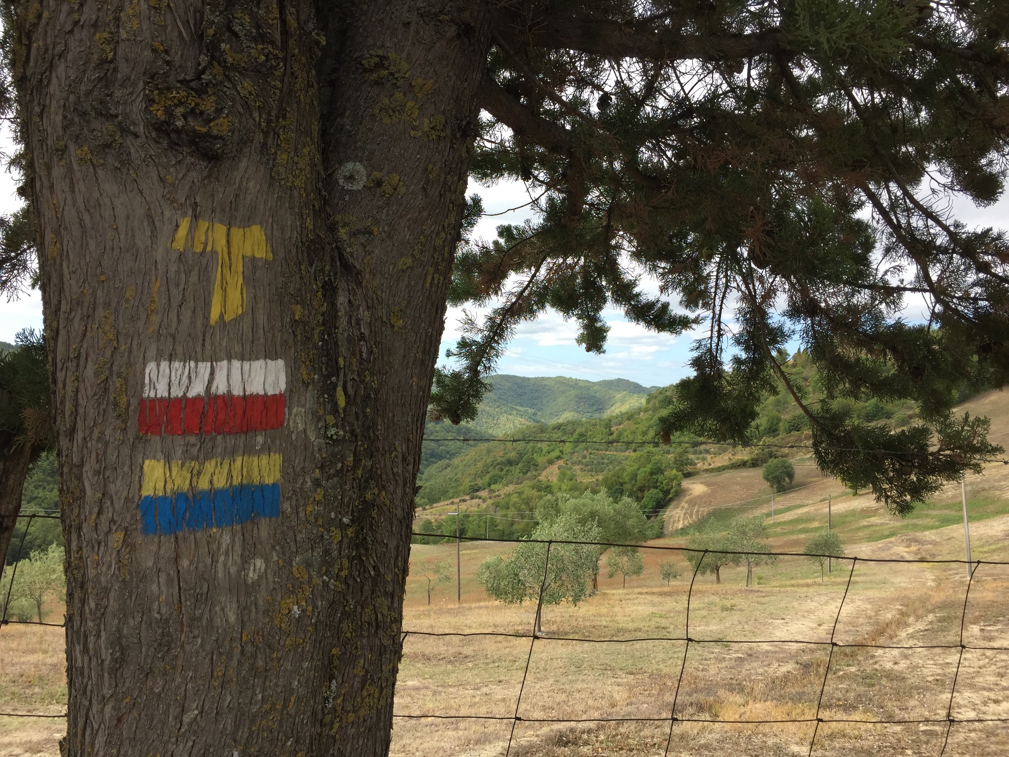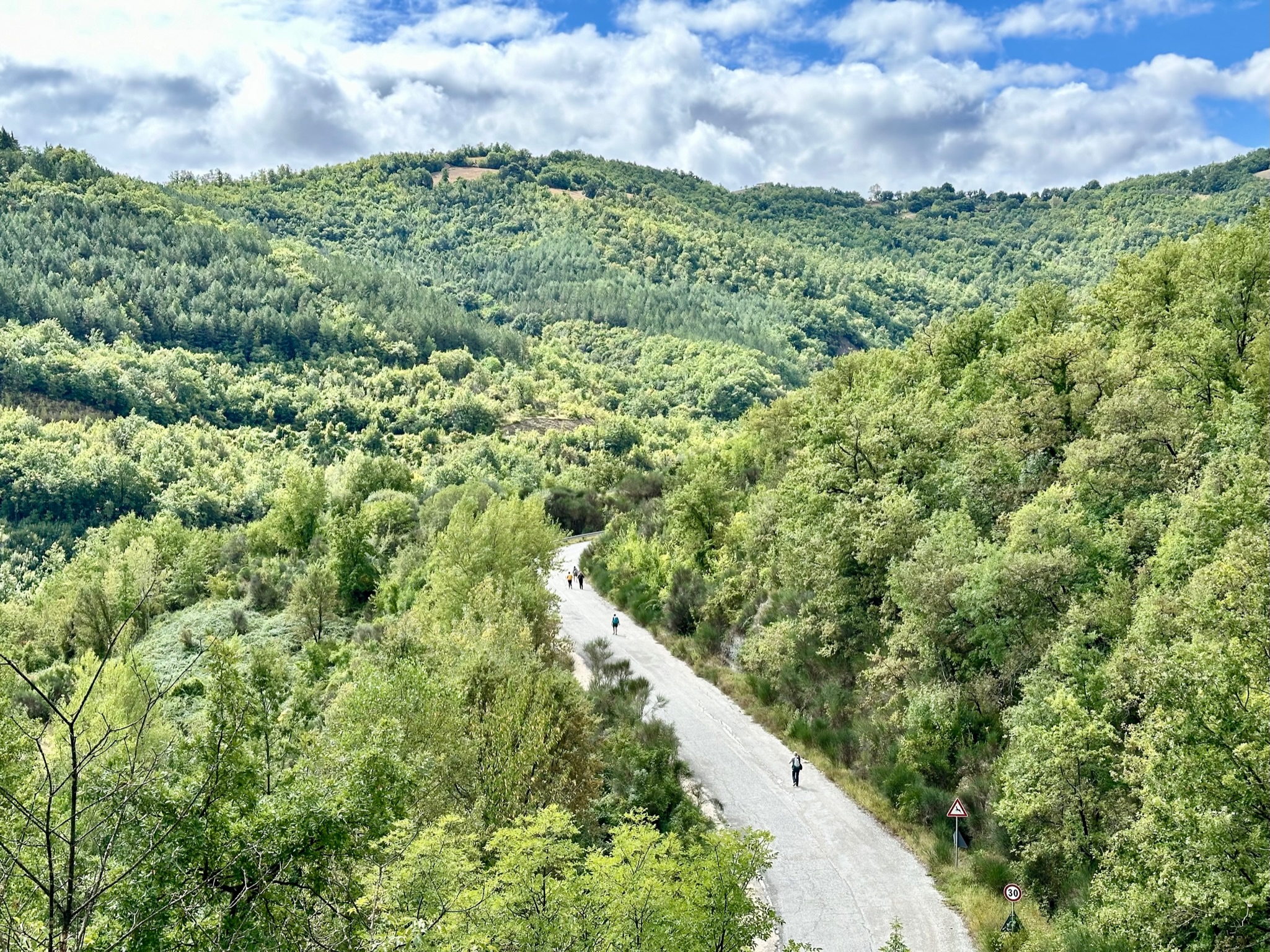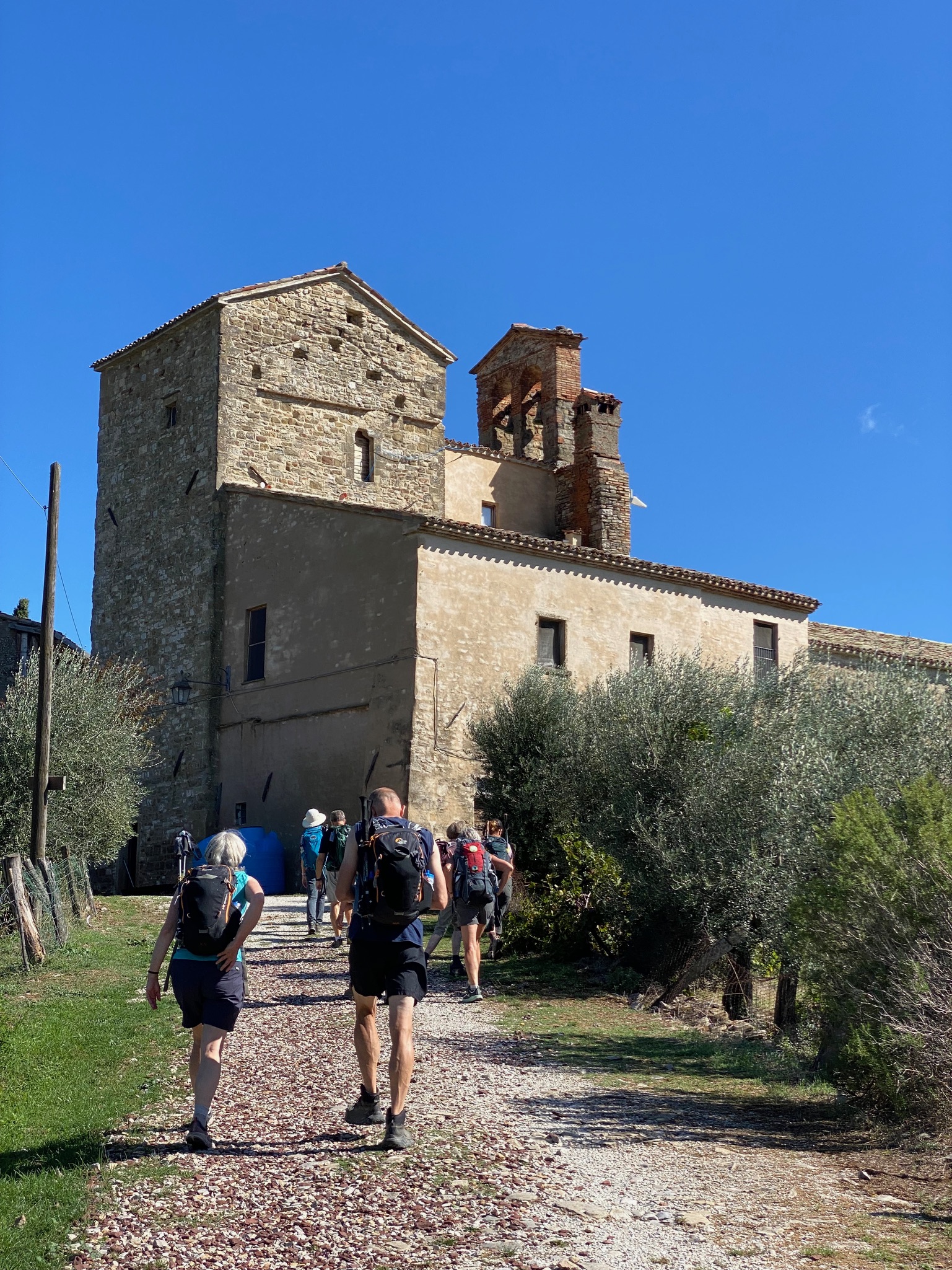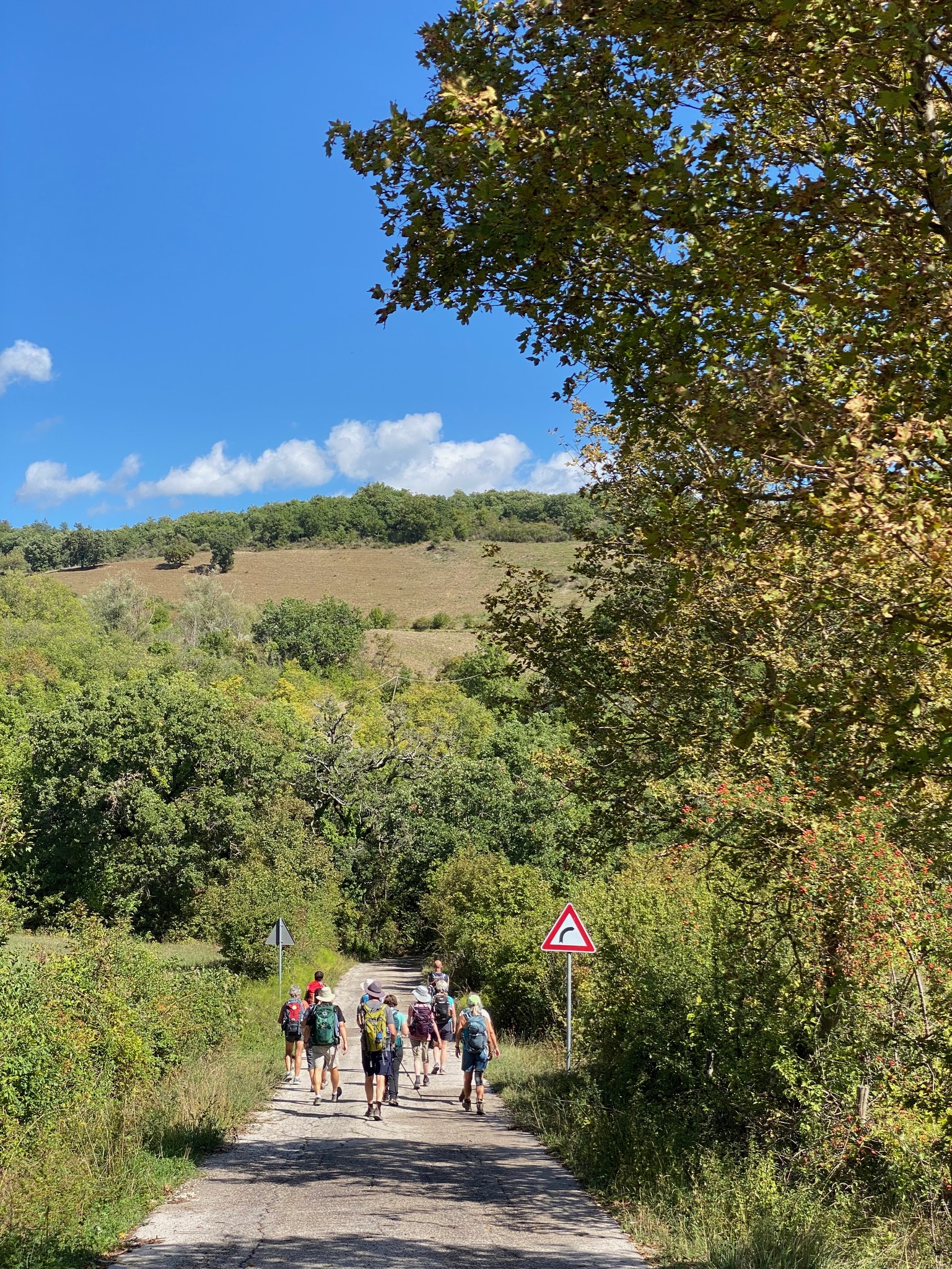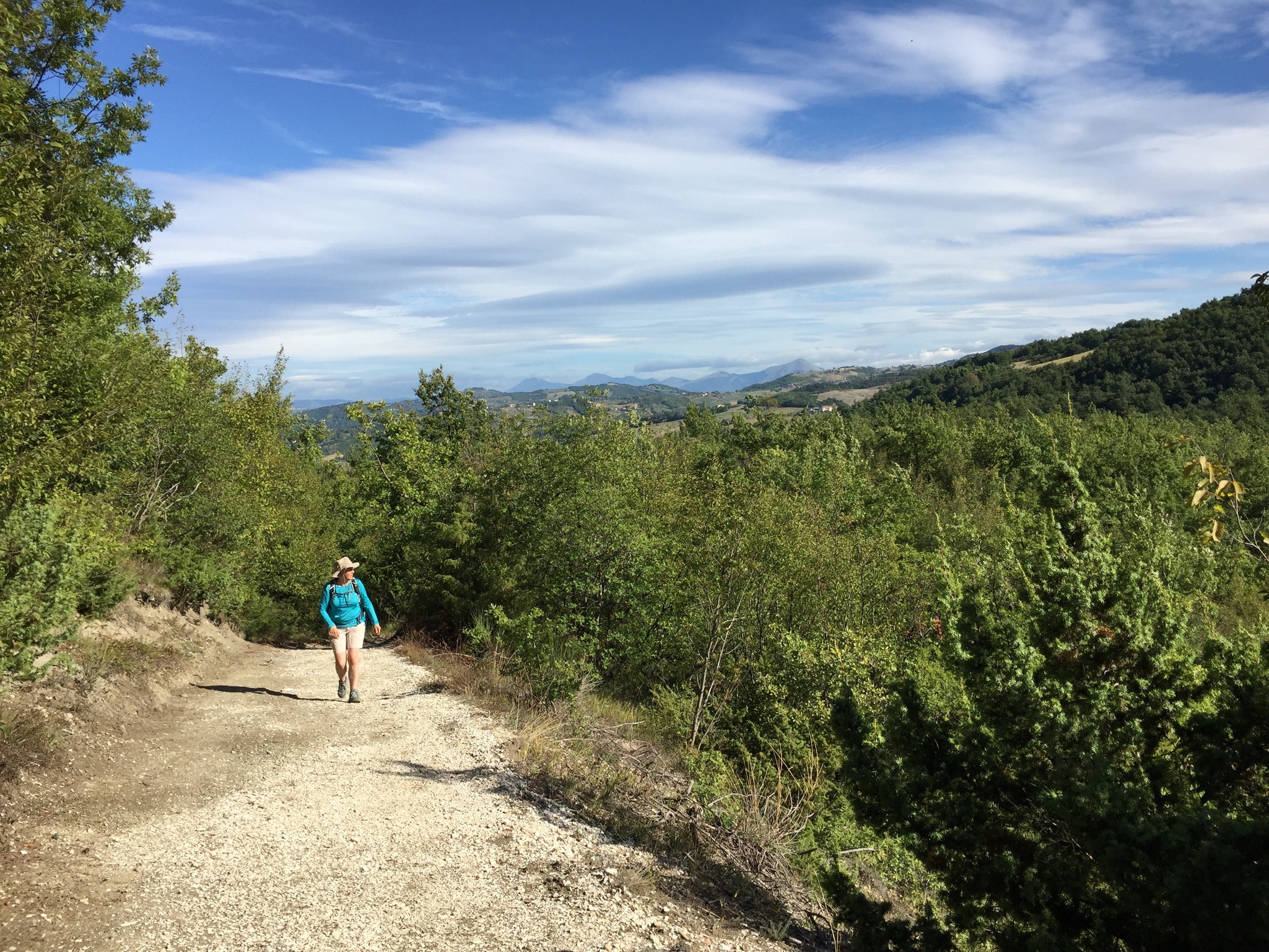 This day traverses rolling hills and wooded stretches, with steady climbs and descents toward Valfabbrica. Here Francis is said to have been robbed and stripped; it is a place of humility and powerful spiritual resonance.