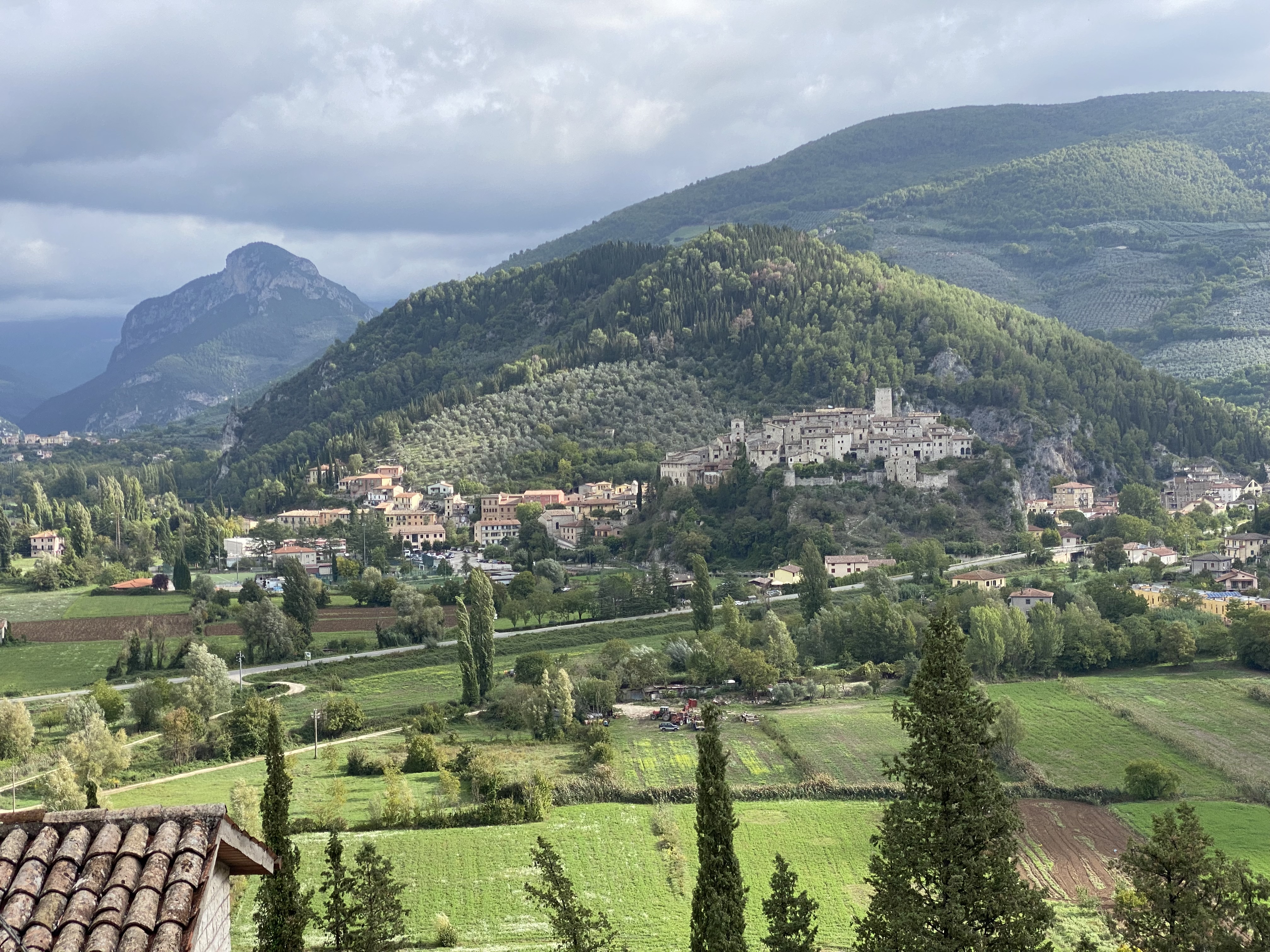 Leaving Trevi behind, we walk along wooded slopes dotted with convents and old castles, crossing ridgelines and descending toward Spoleto. In Spoleto we’ll explore the Duomo, including Francis’s handwritten letter kept there.